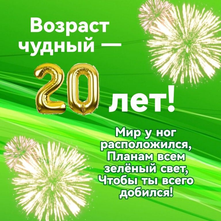 [С днем рождения] открытки по годам - двадцать 20 лет. Душевное поздравление с Днем рождения скачать на телефон.