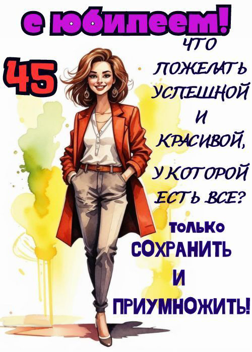 Красивые открытки и картинки. Поздравить с Юбилеем 45 лет женщину. С юмором с Днем рождения скачать на смартфон.
