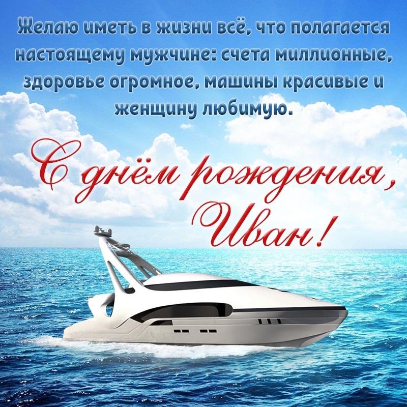 Открытка с днем рождения Иван Ваня. Открытка - душевное поздравление и катер Ивану на день рождения.