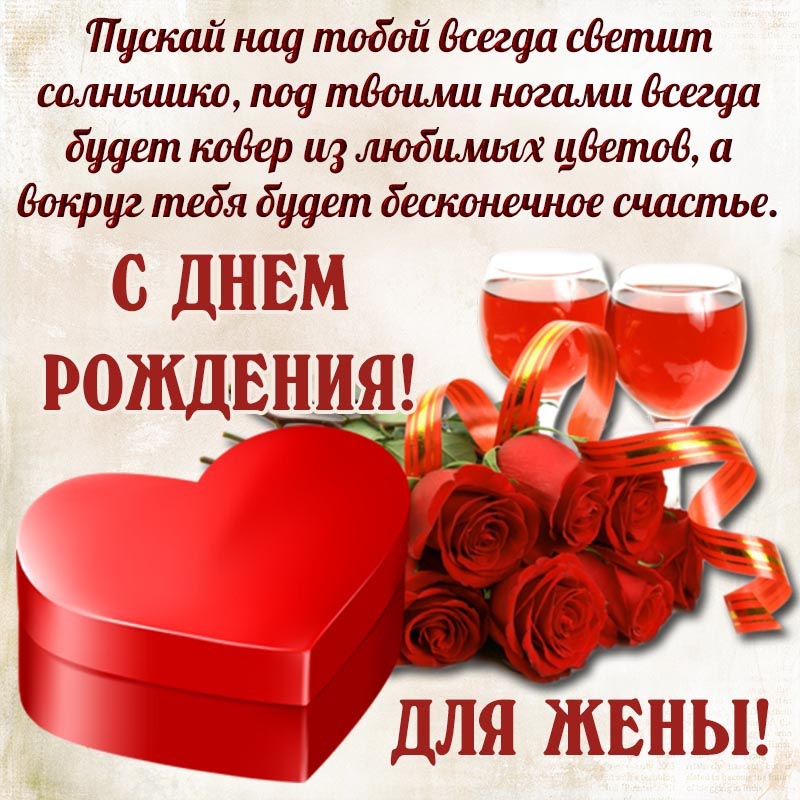 Открытка с днем рождения жена. Открытка на день рождения - замечательное пожелание, цветы и подарок для жены.