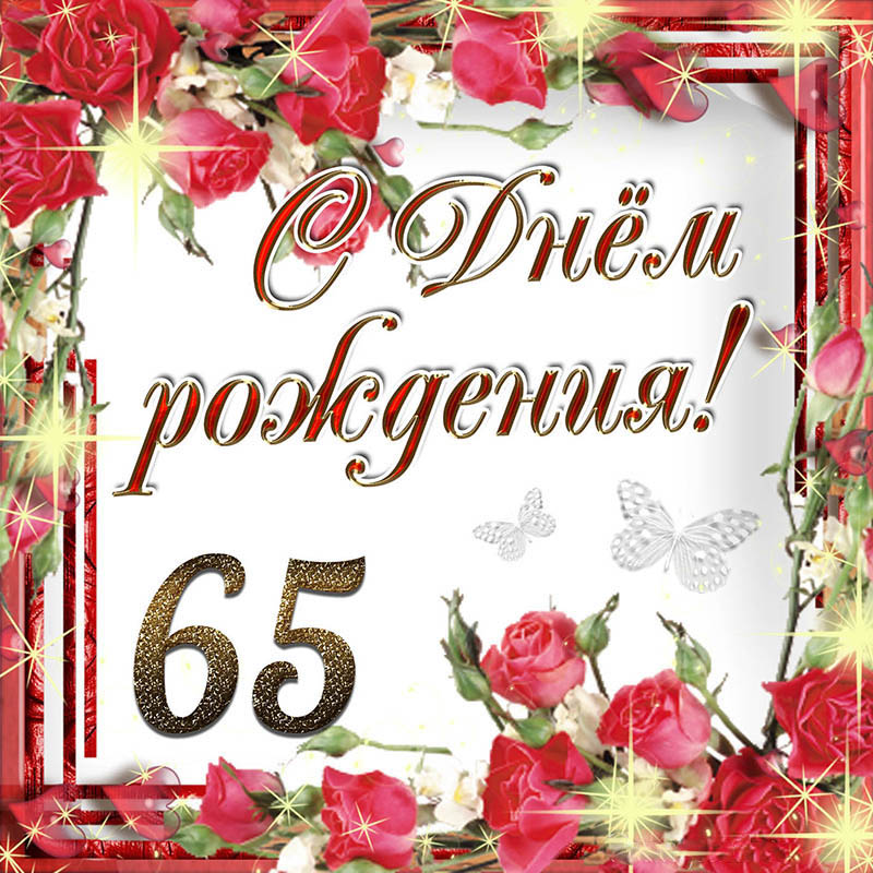 Красивые открытки и картинки. Поздравить с Юбилеем 65 лет женщину. Бесплатная открытка с днем рождения на телефон.