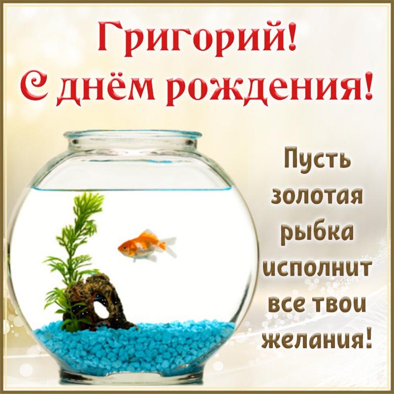 Открытка с днем рождения Григорий. Открытка на день рождения - Григорий, пусть золотая рыбка исполнит все твои желания.