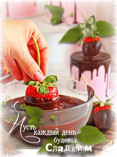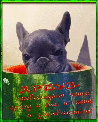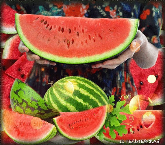 Анимированная открытка Ах, какой у нас арбуз-Замечательный на вкус! Даже нос и щеки Все в арбузном соке.
