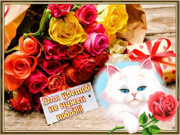 Анимированная открытка Дарите женщинам цветы!