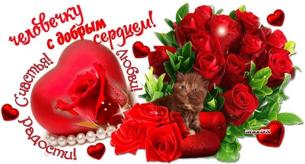 Анимированная открытка Пожелаю три словечка. Счастья! Нежности! Любви... Если есть