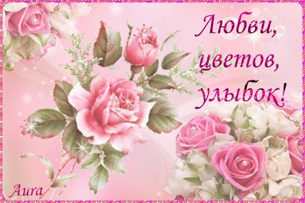 Анимированная открытка С любовью! Любви, улыбок и цветов, прекрасных, я рких дней