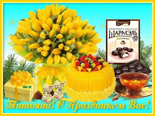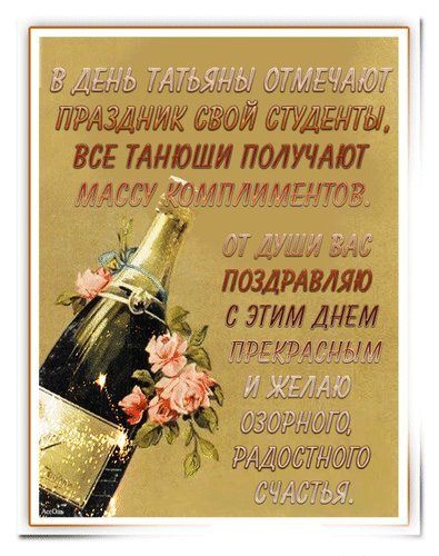 Анимированная открытка С праздником вас, Татьянки! Будьте счастливы!