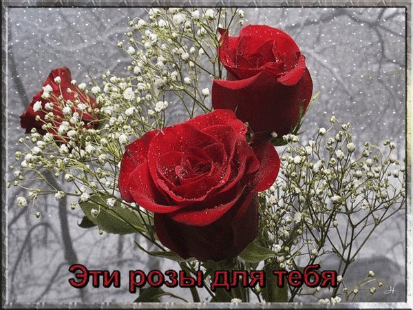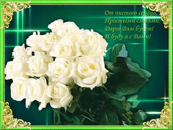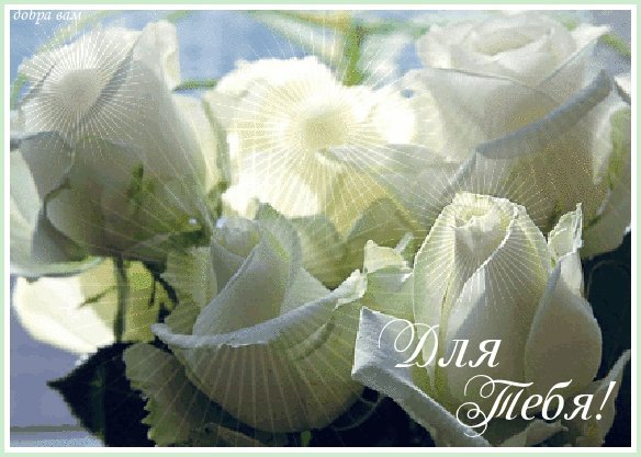 Анимированная открытка Тебе с теплом белые розы