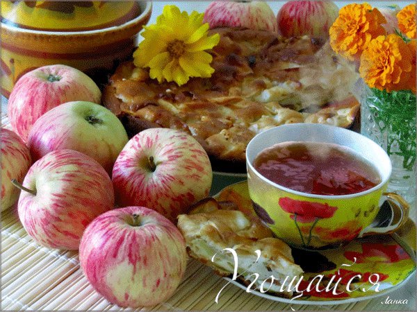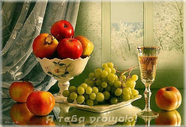 Анимированная открытка Угощайся! блондинка и голубые глаза