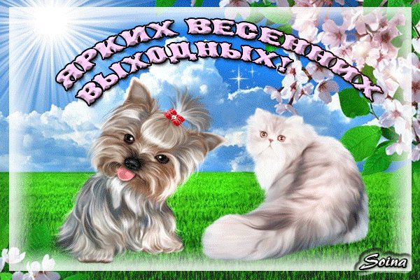 Анимированная открытка ЯРКИХ ВЕСЕННИХ ВЫХОДНЫХ!