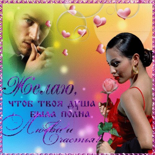 Анимированная открытка ЖЕЛАЮ ЧТОБ ТВОЯ ДУША БЫЛА ПОЛНА Любви и Счастья!