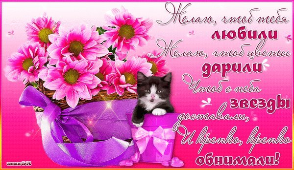 Анимированная открытка Желаю, чтобы тебя любили, желаю, чтобы цветы дарили, чтоб