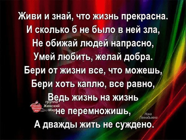 Анимированная открытка Живите, любите, открыто и страстно. Грустить не спешите-ведь жизнь так прекрасна!