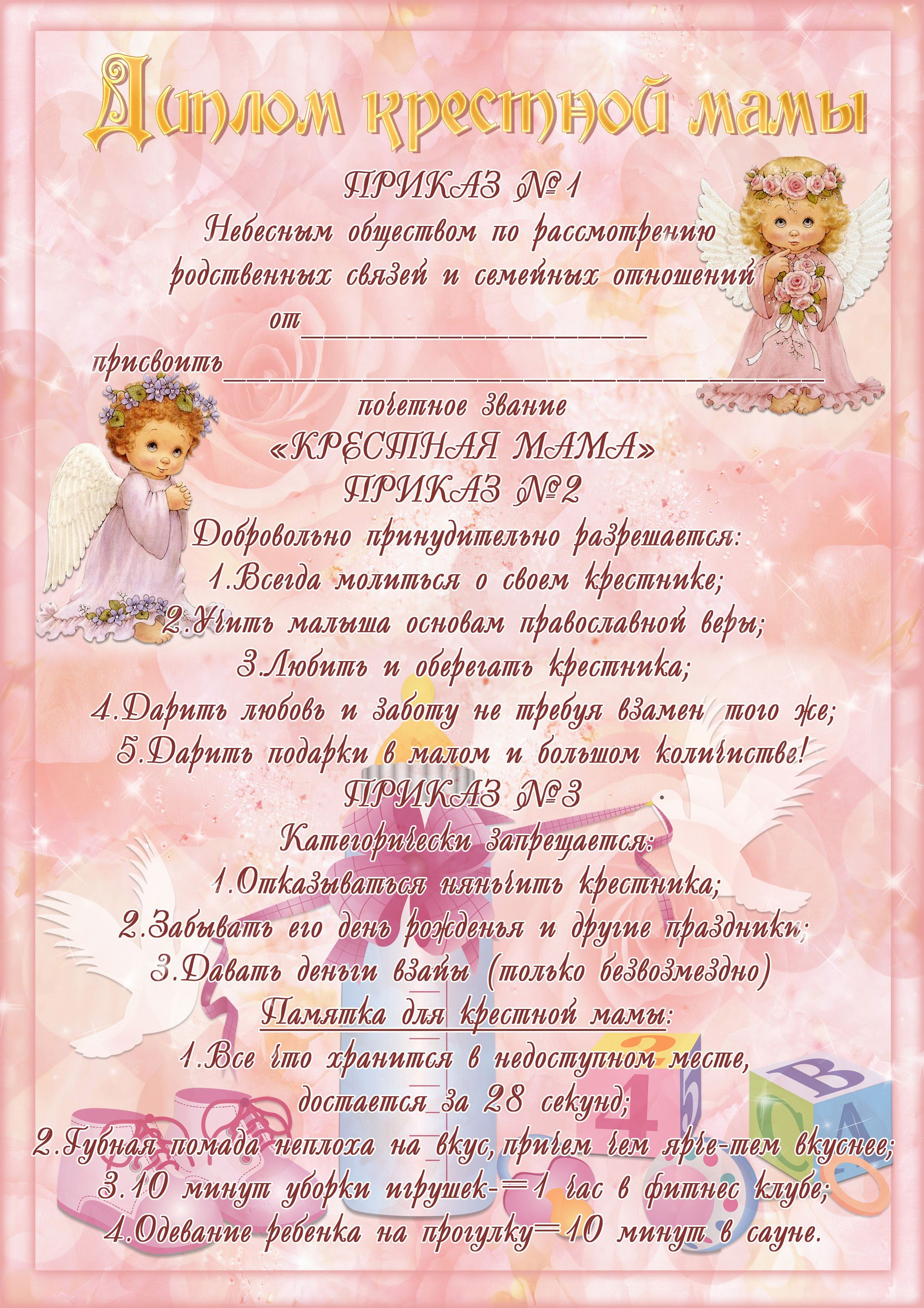 Диплом крестной мамы с юмором.