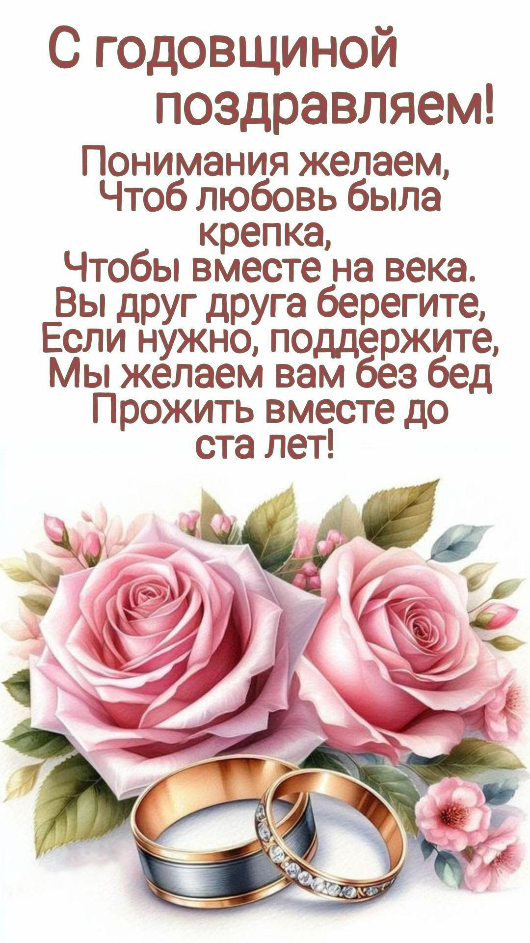 Годовщина свадьбы. Пожелание в стихах. Розы и кольца.
