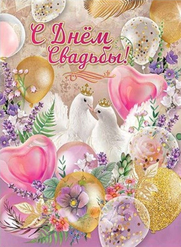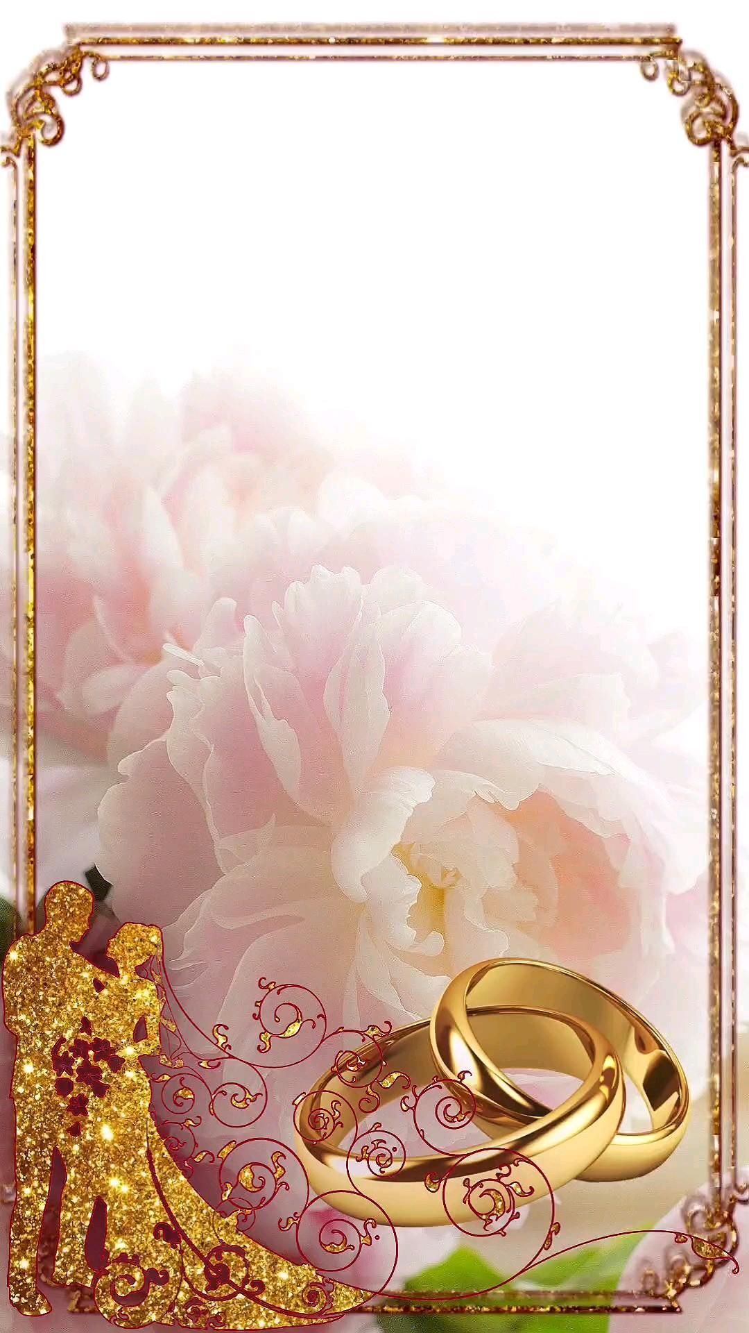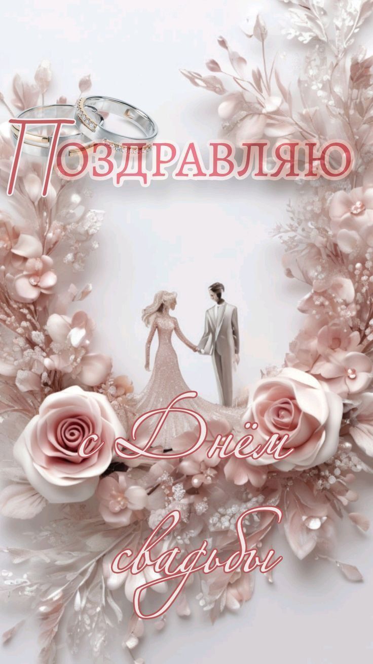 Красивая открытка шаблон с днем свадьбы. Жених и невеста, кольца, место для вашего текста.