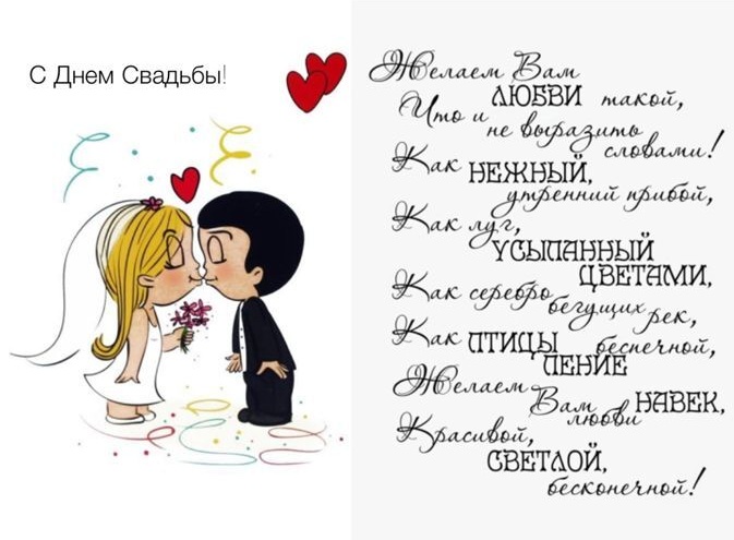 Нежная открытка с днем свадьбы. Пожелания, белые лебеди на голубом фоне.