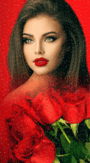 Открытка gif анимационная мерцающая. Без текста. Девушка с красными розами.