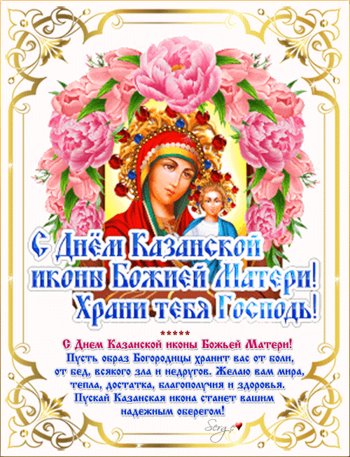Открытка на День Казанской иконы Божией Матери.