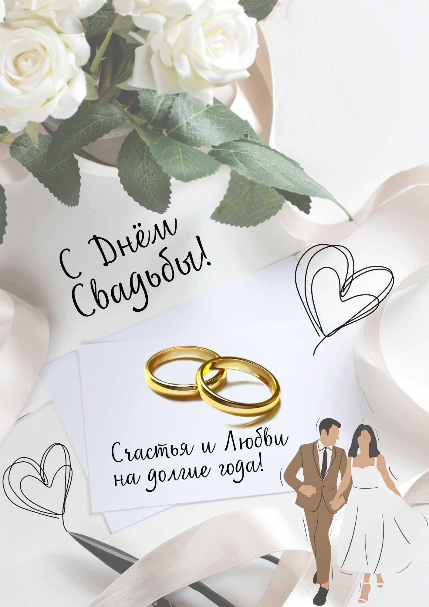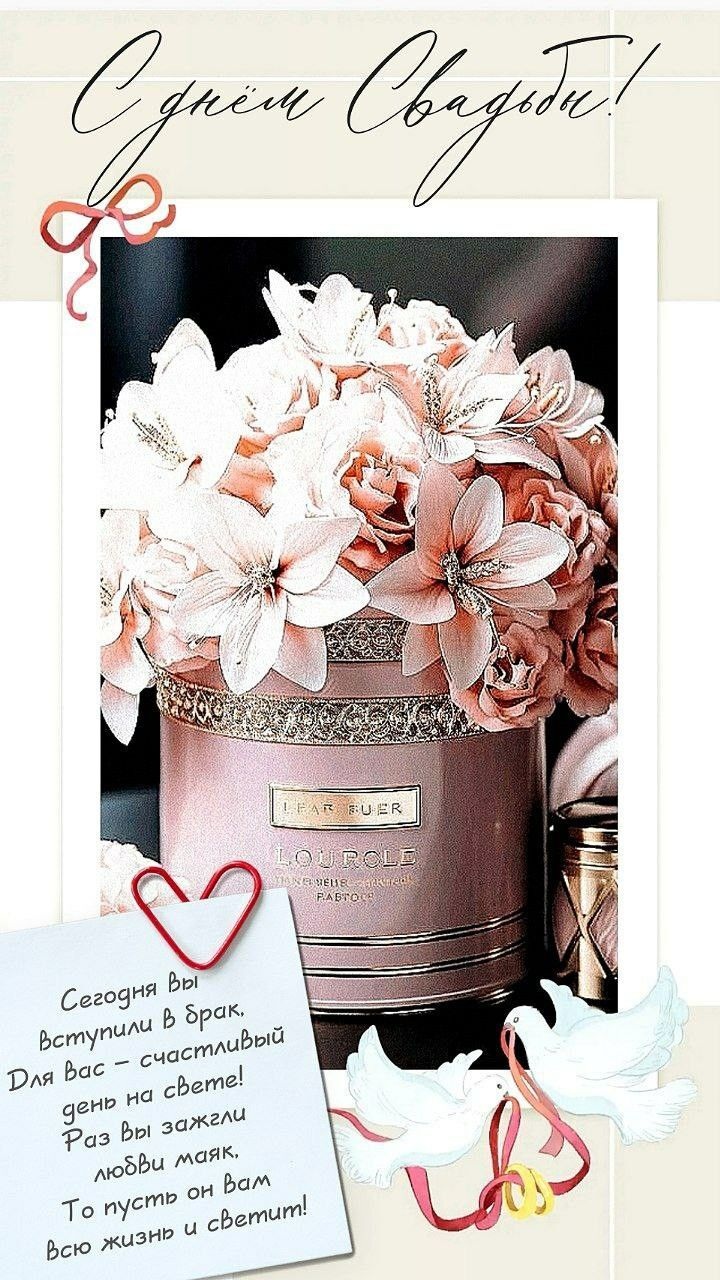 Открытка на день свадьбы. Любви и счастья. Букет розовых цветов.