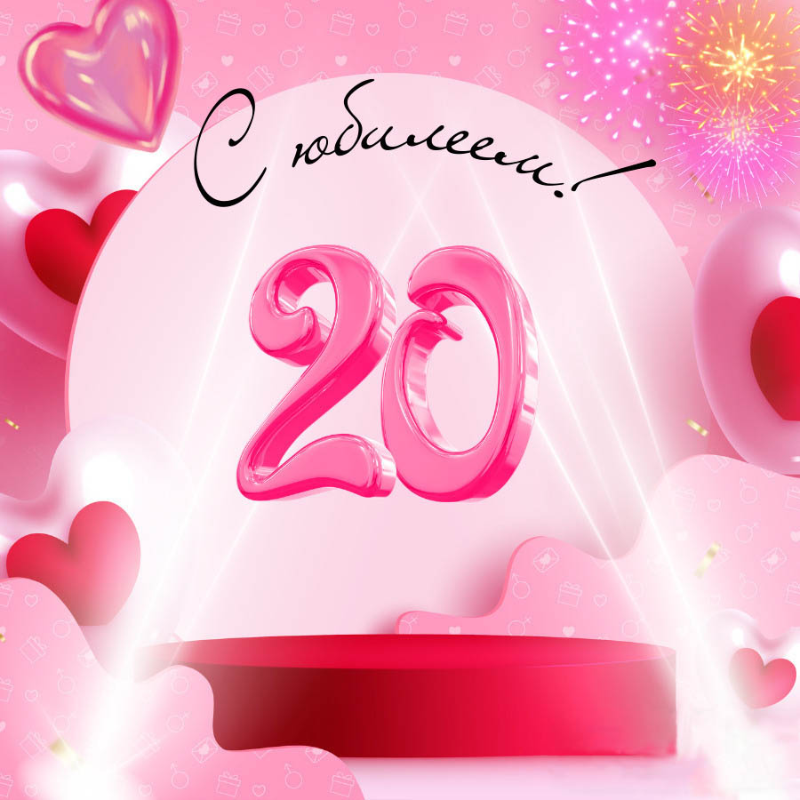 20 лет. Красивые открытки и картинки с Юбилеем. Поздравления.