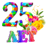 Открытка на юбилей 25 лет gif анимационная. Цветы.