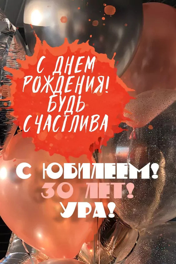 Открытка на юбилей 30 лет девушке. Пожелание и шарики.