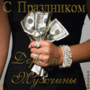 Открытка с 23 февраля День Защитника Отечества gif анимационная. Деньги в руках.