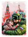 Открытка с 23 февраля День Защитника Отечества gif анимационная мерцающая. Российский военный с дочкой.