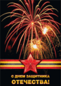 Открытка с 23 февраля День Защитника Отечества gif анимационная мерцающая. Салюты, звезда.
