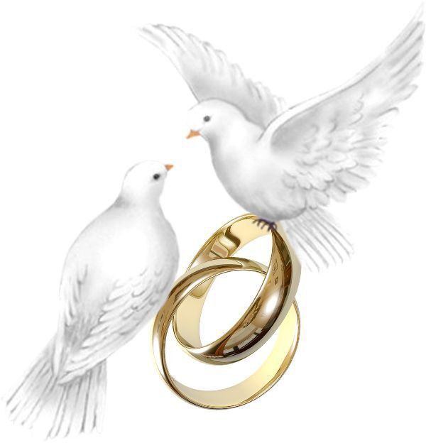 Открытка с днем бракосочетания. Кольца и белые цветы. Совет да любовь!