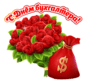Открытка с днем бухгалтера gif анимационная. Цветы и мешок с деньгами.