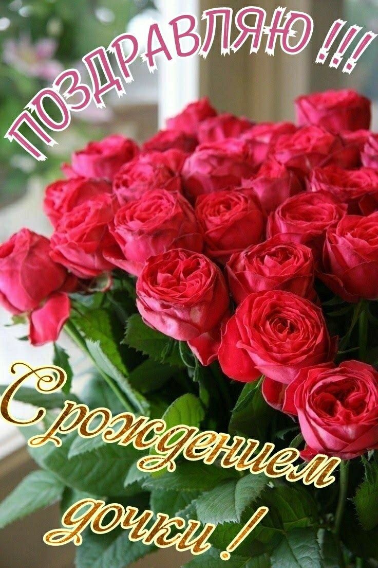 Открытка с днем рождения дочь. Без текста. Красные розы с отражением.