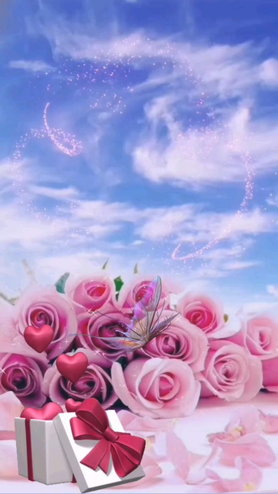 Открытка с днем рождения дочь. Без текста. Розы, небо, подарок.