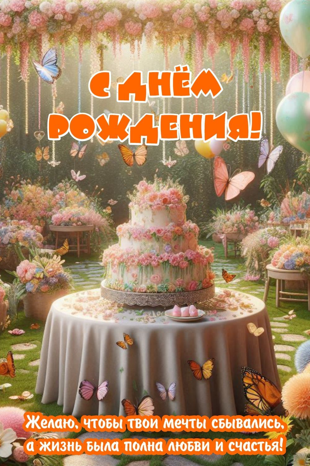 Открытка с днем рождения дочь. Цветы и бабочки.