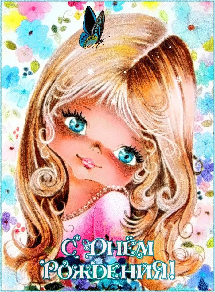 Открытка с днем рождения дочь. Девочка с бабочкой.
