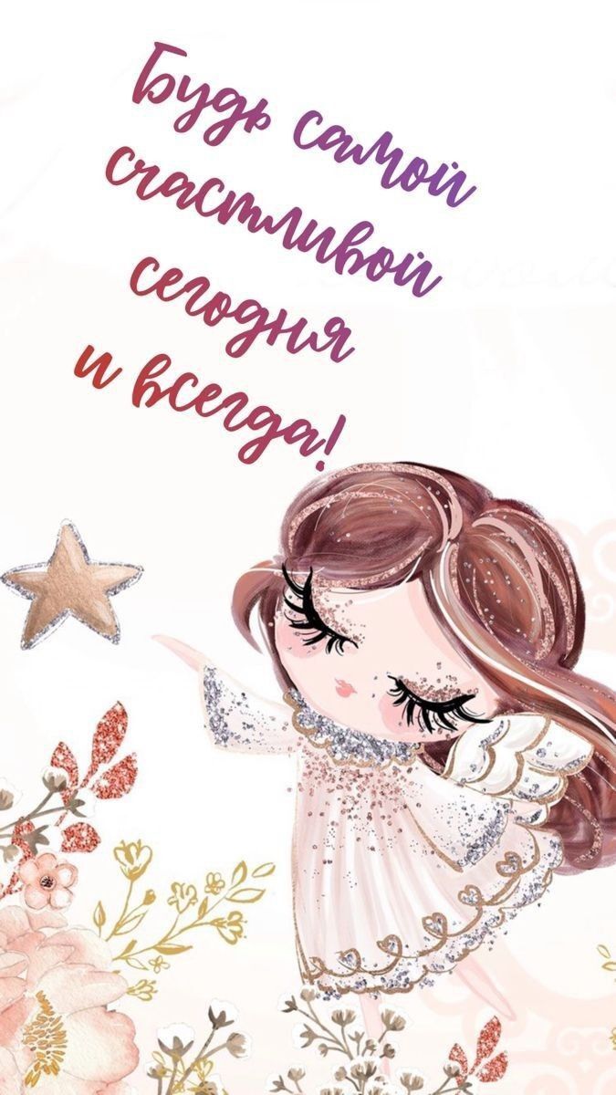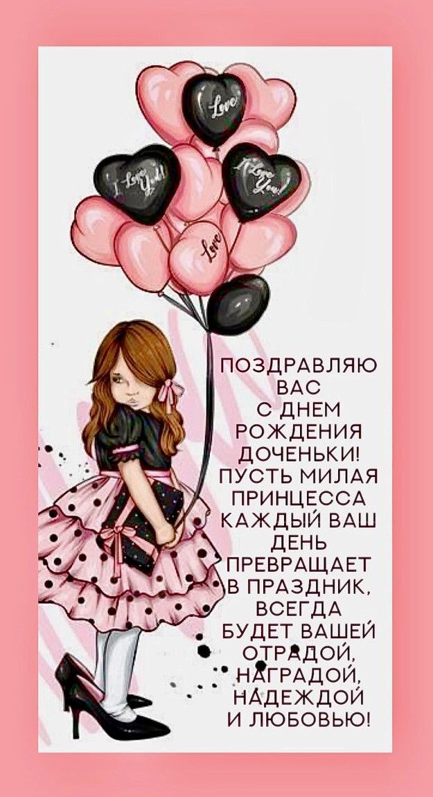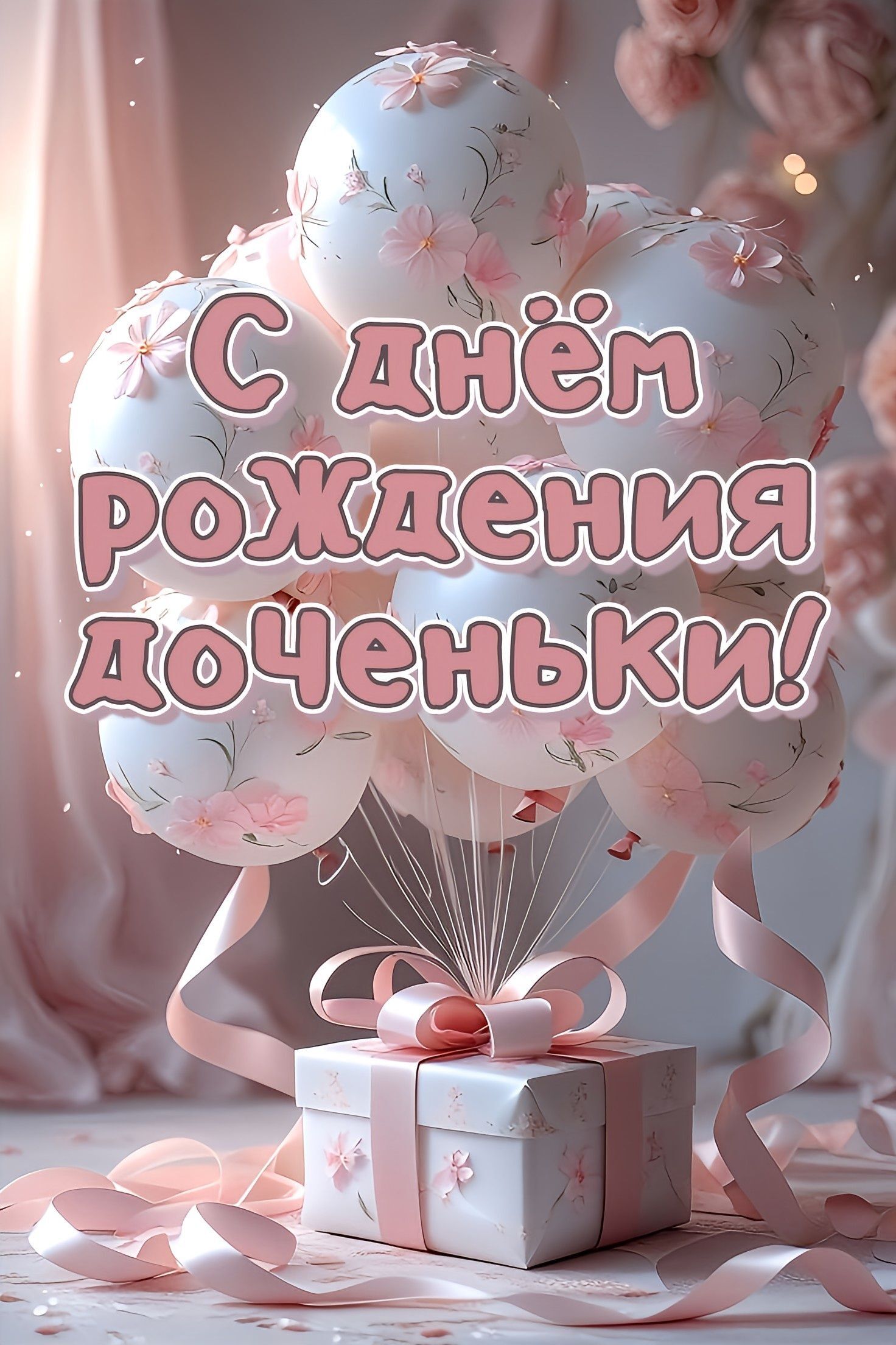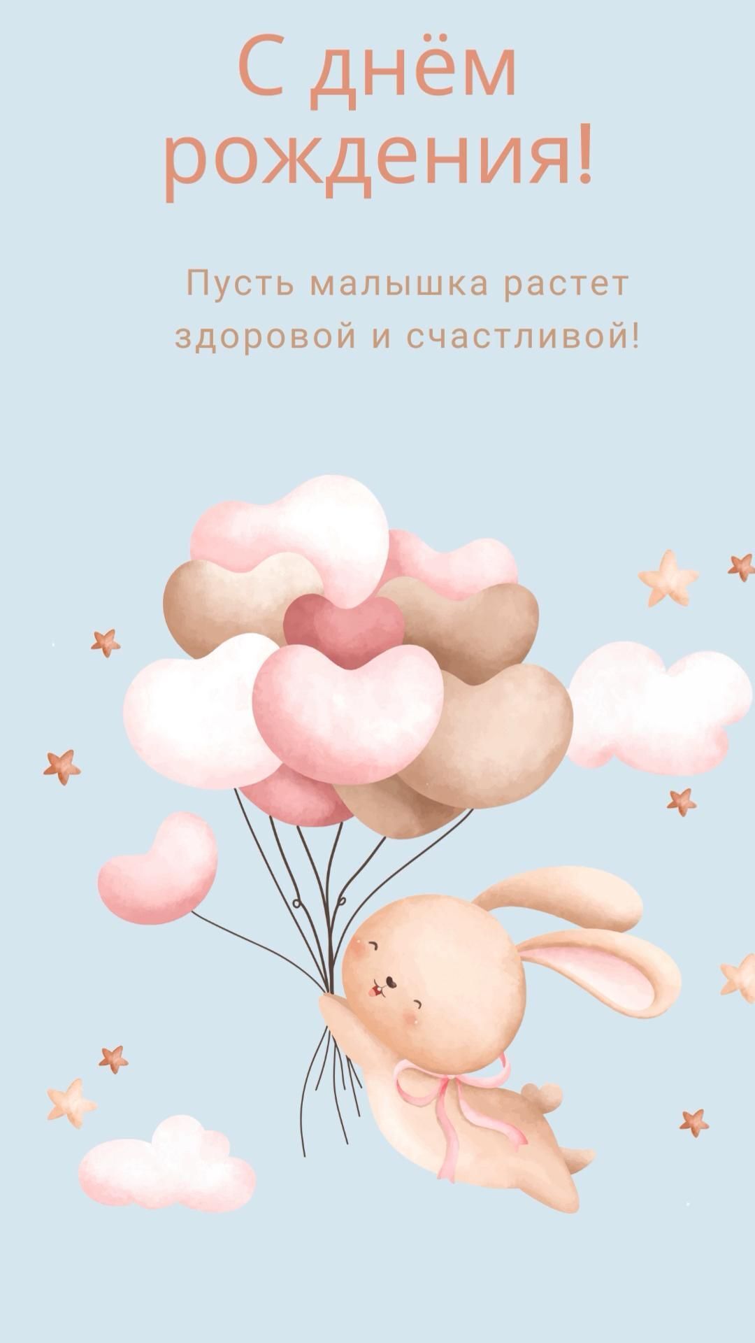 Открытка с днем рождения дочь. Для родителей. Зайчик летит на шарике.