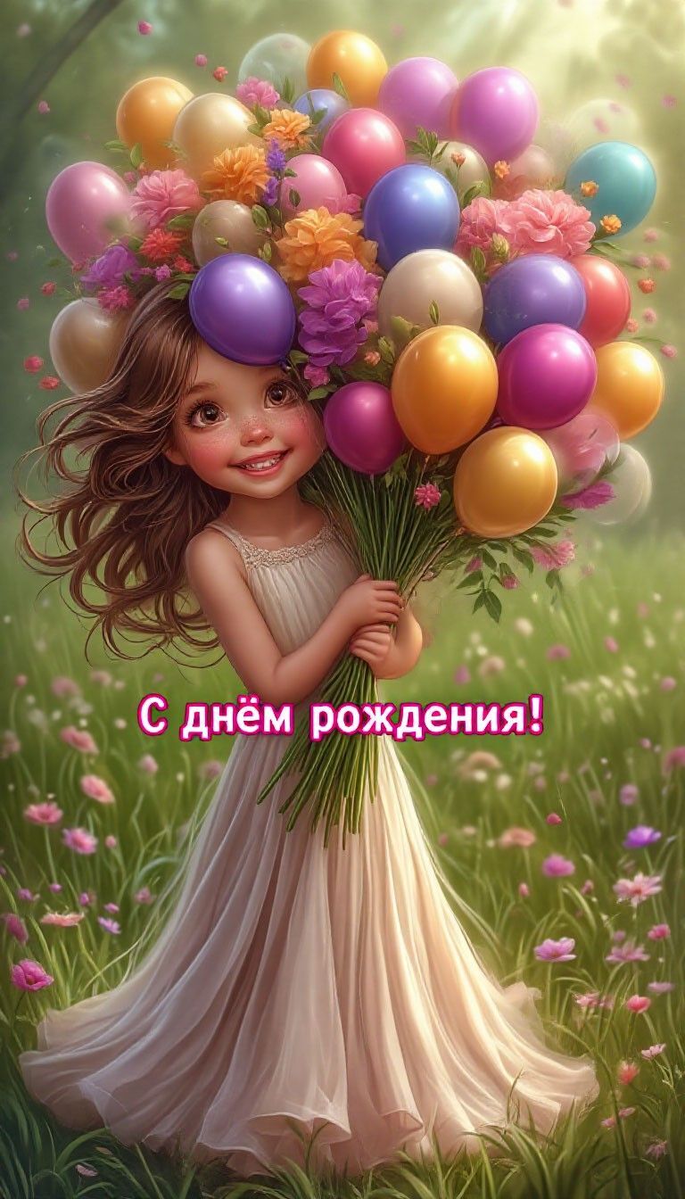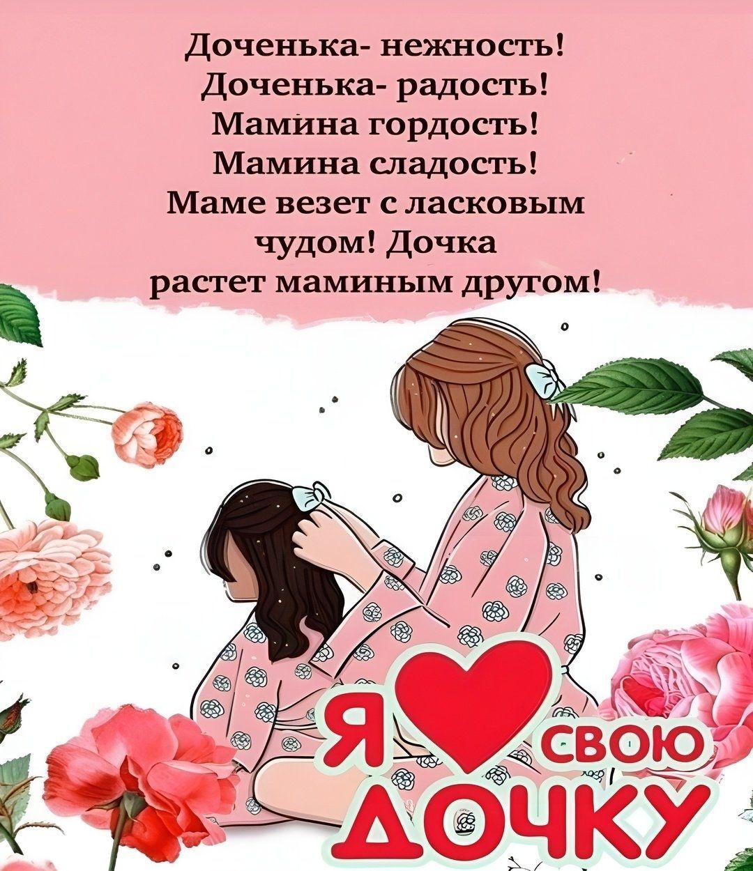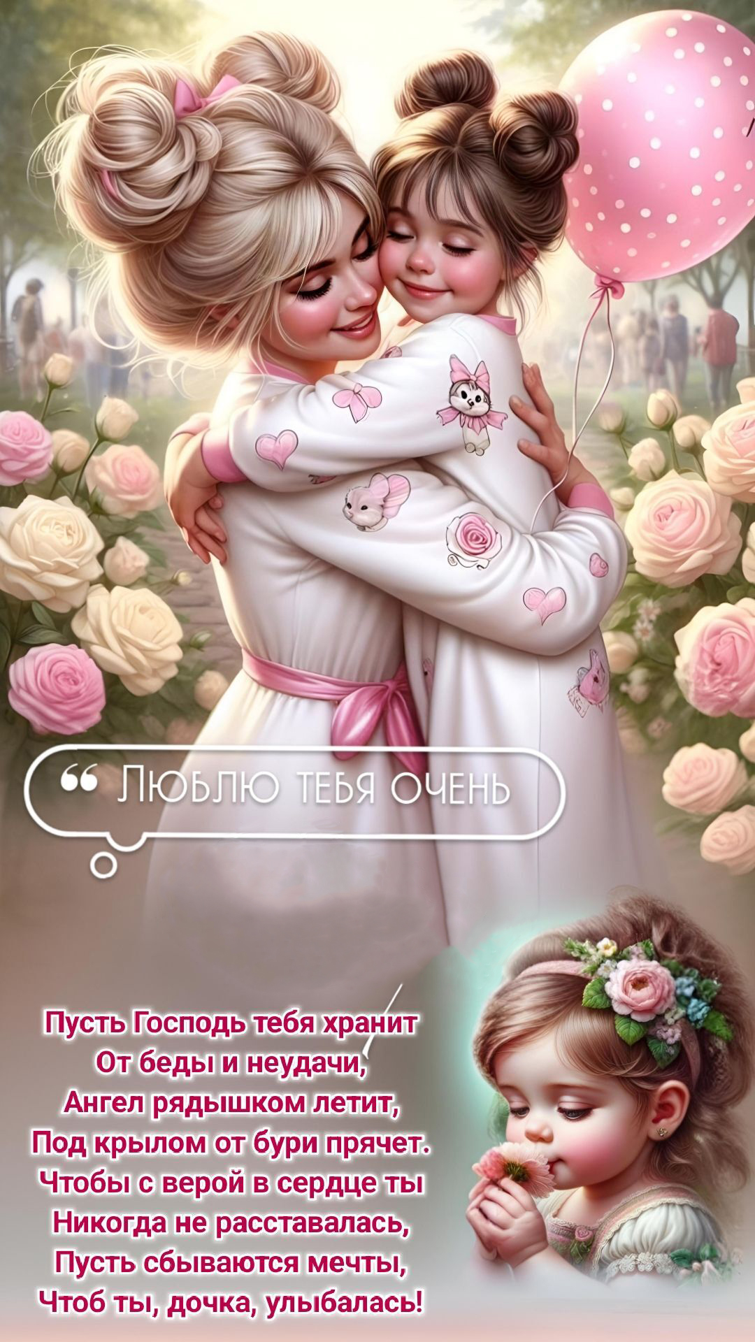 Открытка с днем рождения дочь. Мама с дочкой, цветы, шарик, девочка, пожелания.