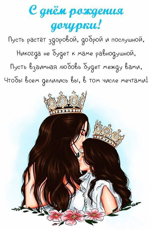 Открытка с днем рождения дочь. Маме. Пожелания, мама и дочка в коронах.