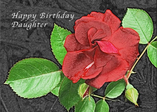 Открытка с днем рождения дочь. На английском языке. Happy Birthday Daughter. Цветок.