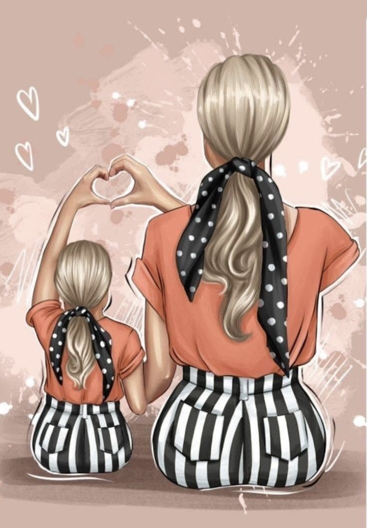 Открытка с днем рождения дочь. От мамы. Без текста. Мама с дочкой и сердечками.