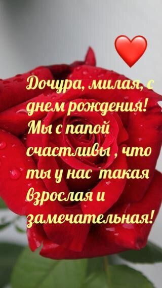 Открытка с днем рождения дочь. От папы и мамы. Цветок и сердечко.
