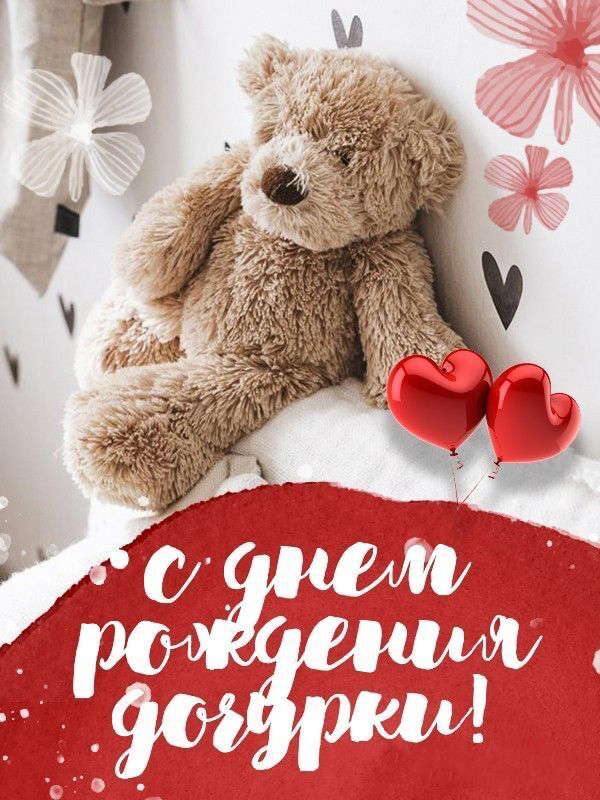Открытка с днем рождения дочь. Пожелания и цветы.