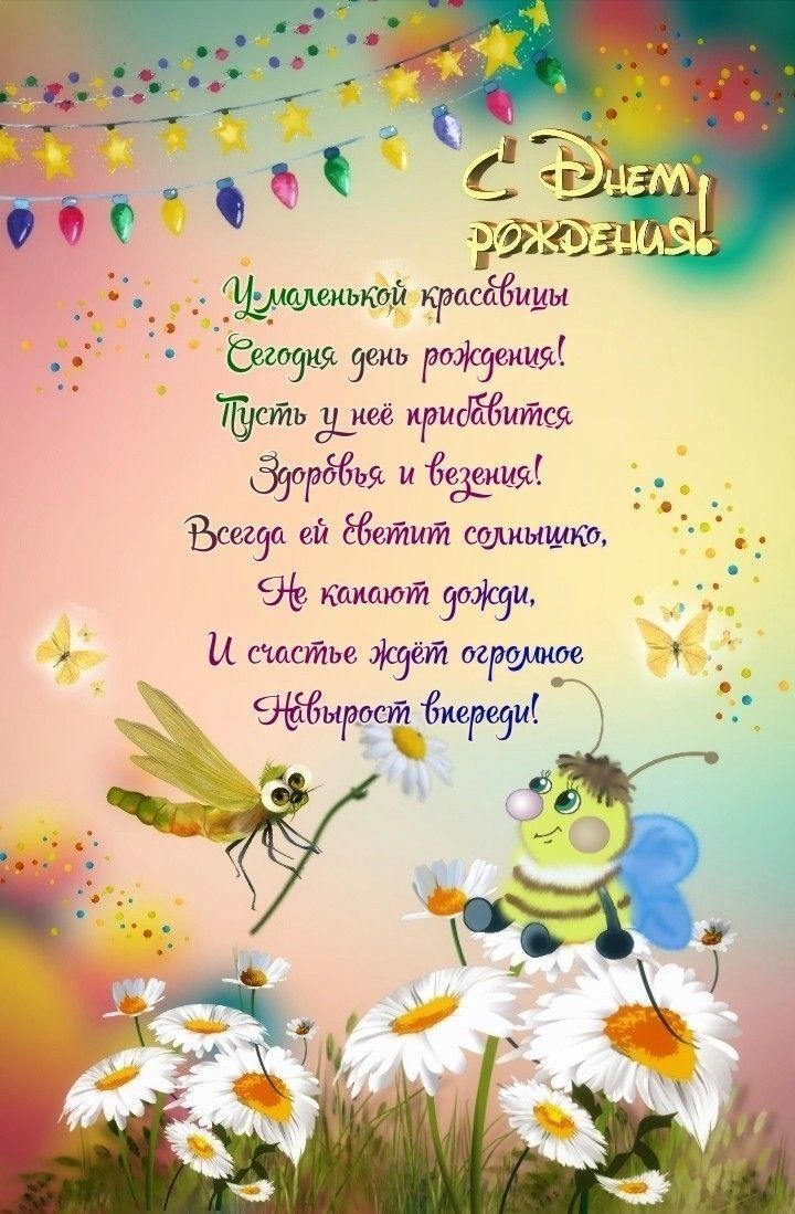 Открытка с днем рождения дочь. Ребенку, девочке. Фея и пожелания.