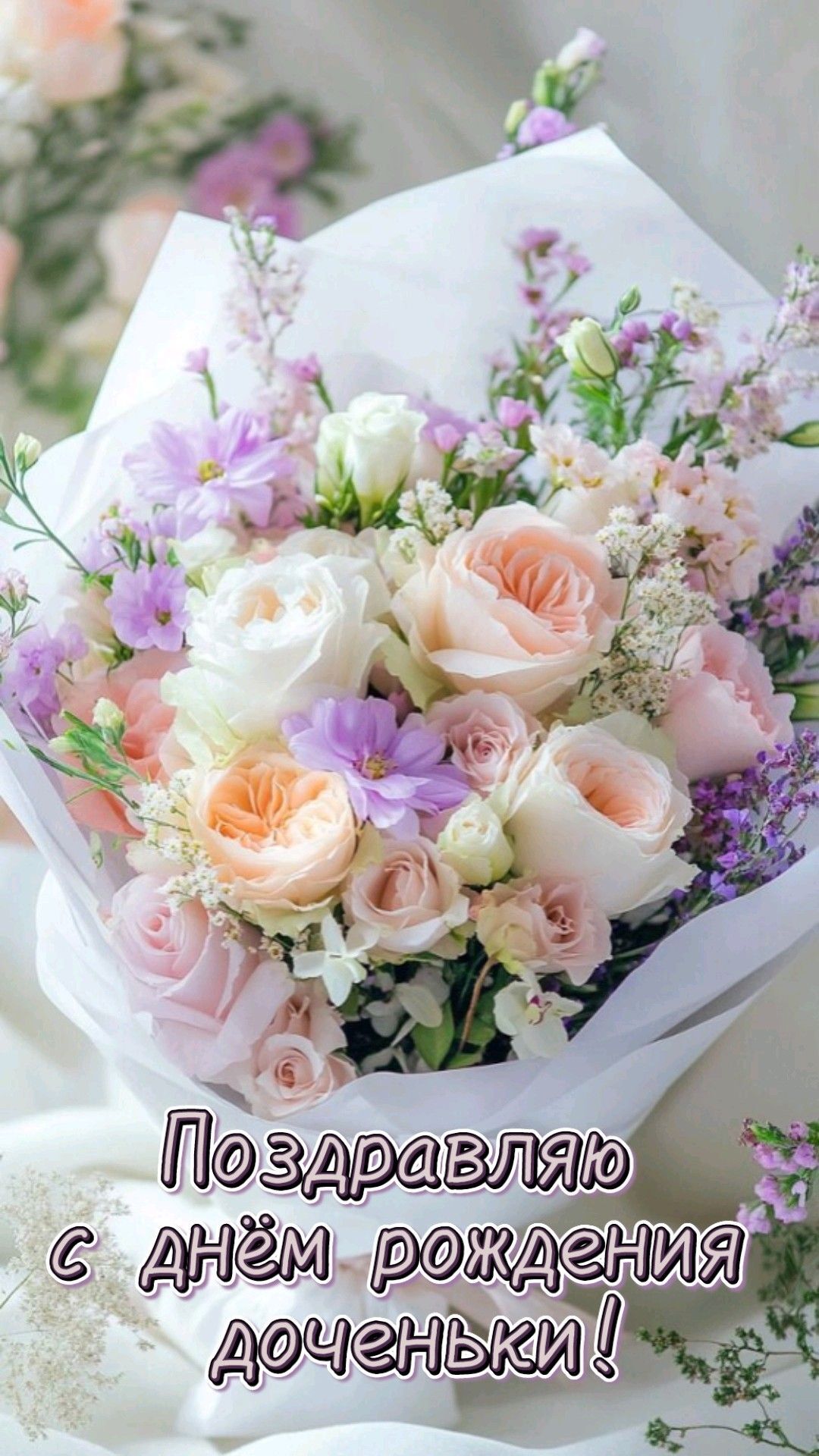 Открытка с днем рождения дочь. С днем рождения доченьки. Цветы.