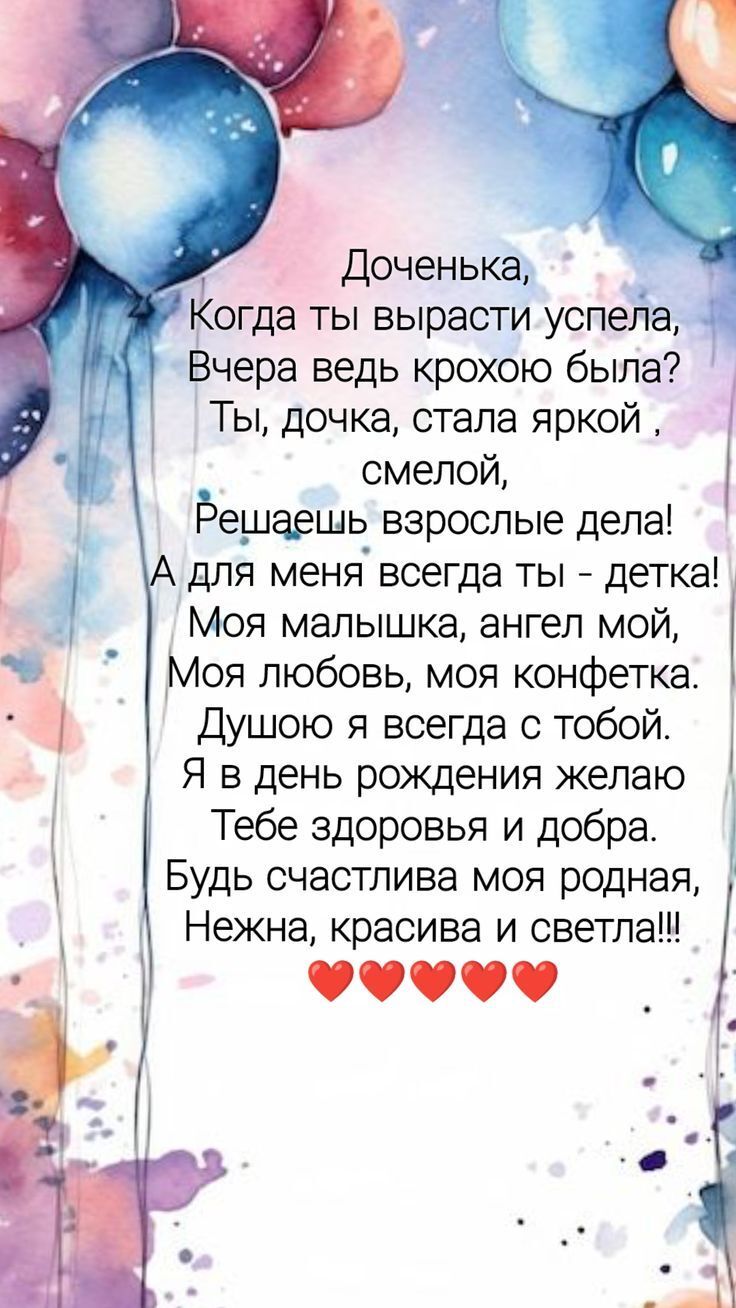 Открытка с днем рождения дочь. Шарики и пожелания.