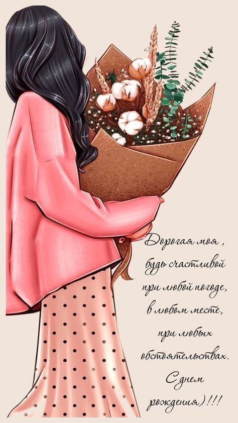 Открытка с днем рождения дочь. В фиолетовых тонах. Девушка и пожелания.