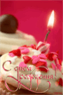 Открытка с днем рождения gif анимационная. Горит свечка на тортике.