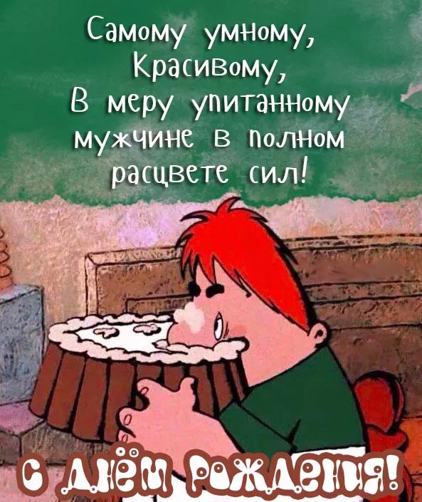 Открытка с днем рождения мужчина прикольная с юмором. Карлсон ест тортик.