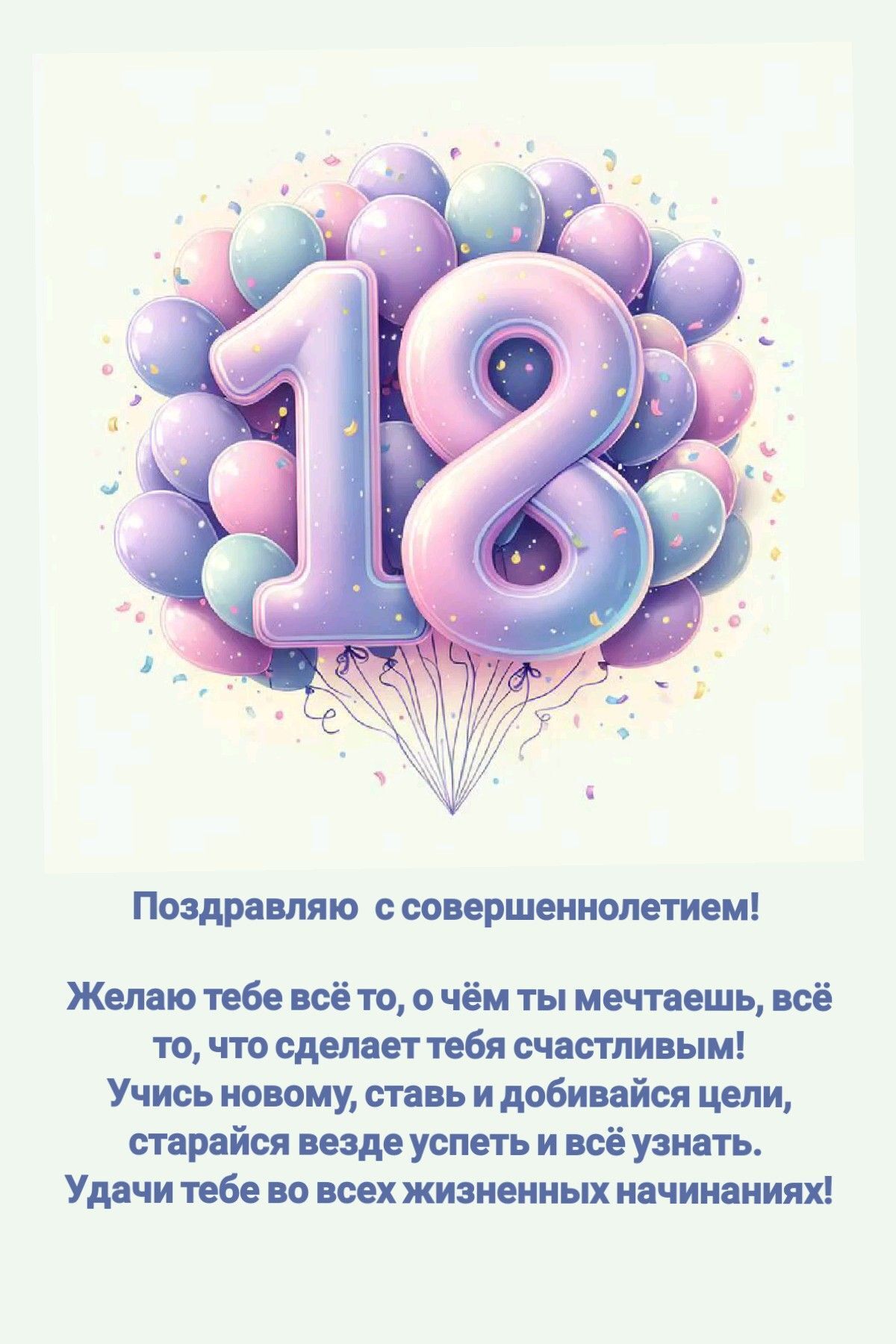 Открытка с днем рождения на 18 лет. Поздравление с совершеннолетием. Пожелание.